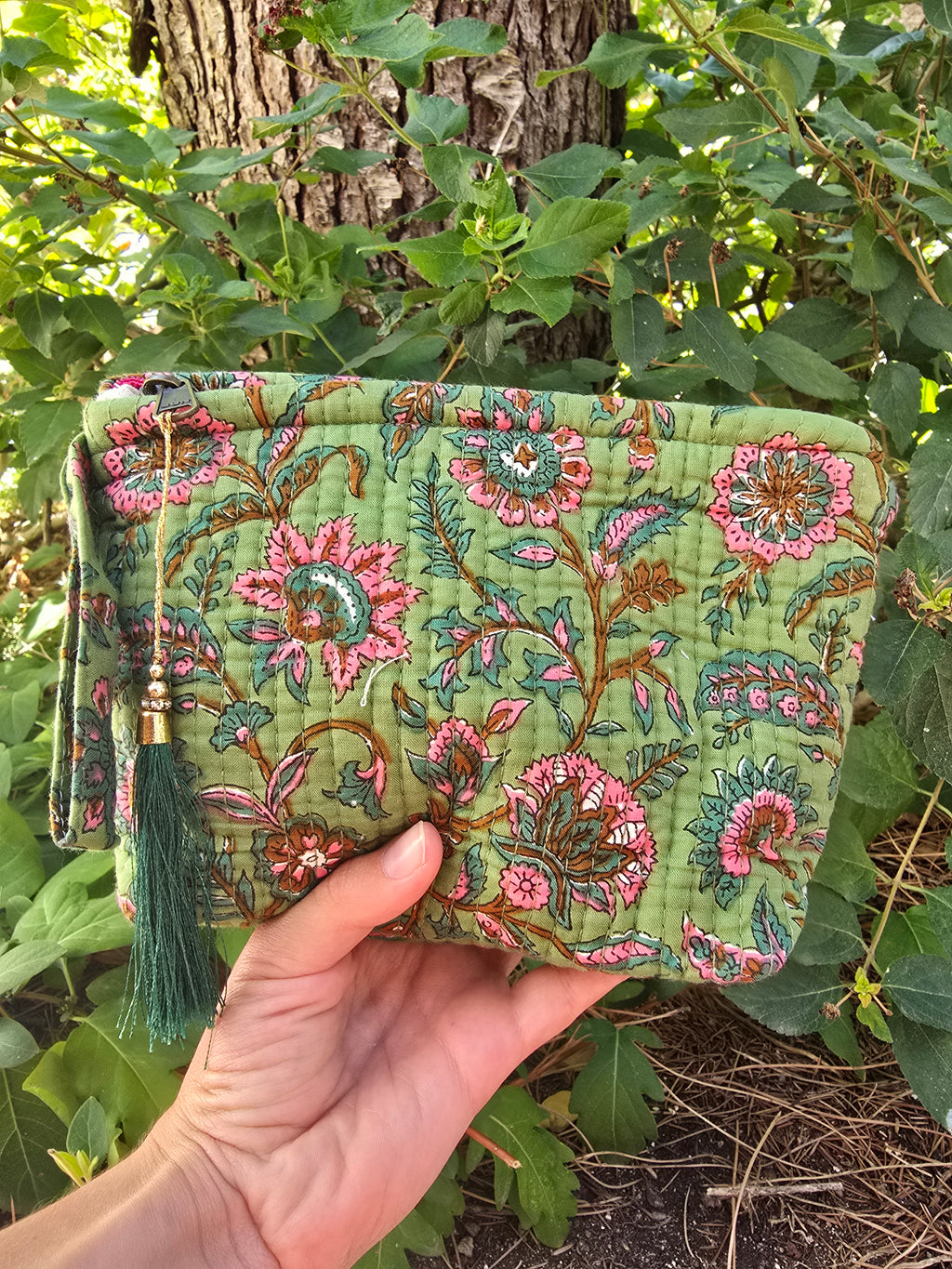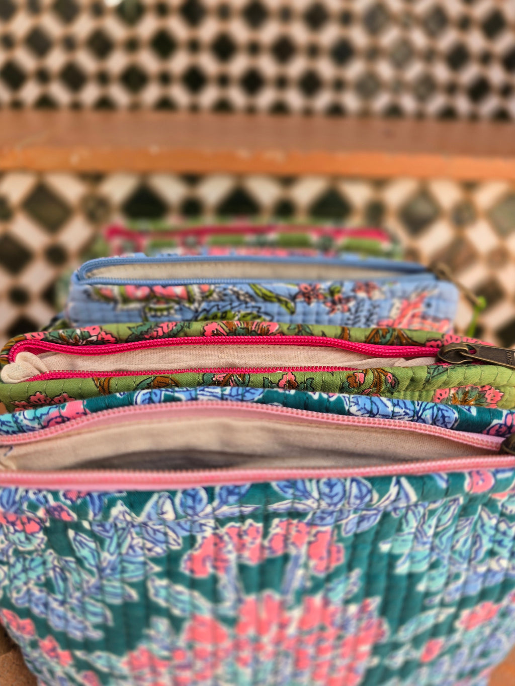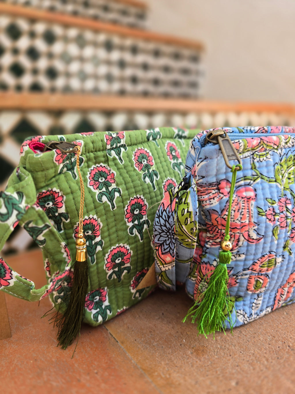 שיתה מסורתית של הדפסה ידנית עם חותמות עץ חרוטות, צבעים טבעיים והטבעה אחת־אחת באהבה